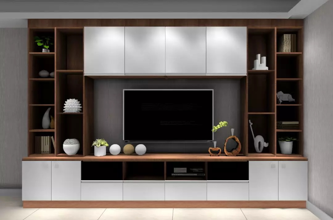 為了避免電視墻的單調感,講究實用的收納型電視墻,由于造型簡潔、層次感強,又不會占據客廳原本的空間,已然成為了很多時髦家庭和小戶型的首選。