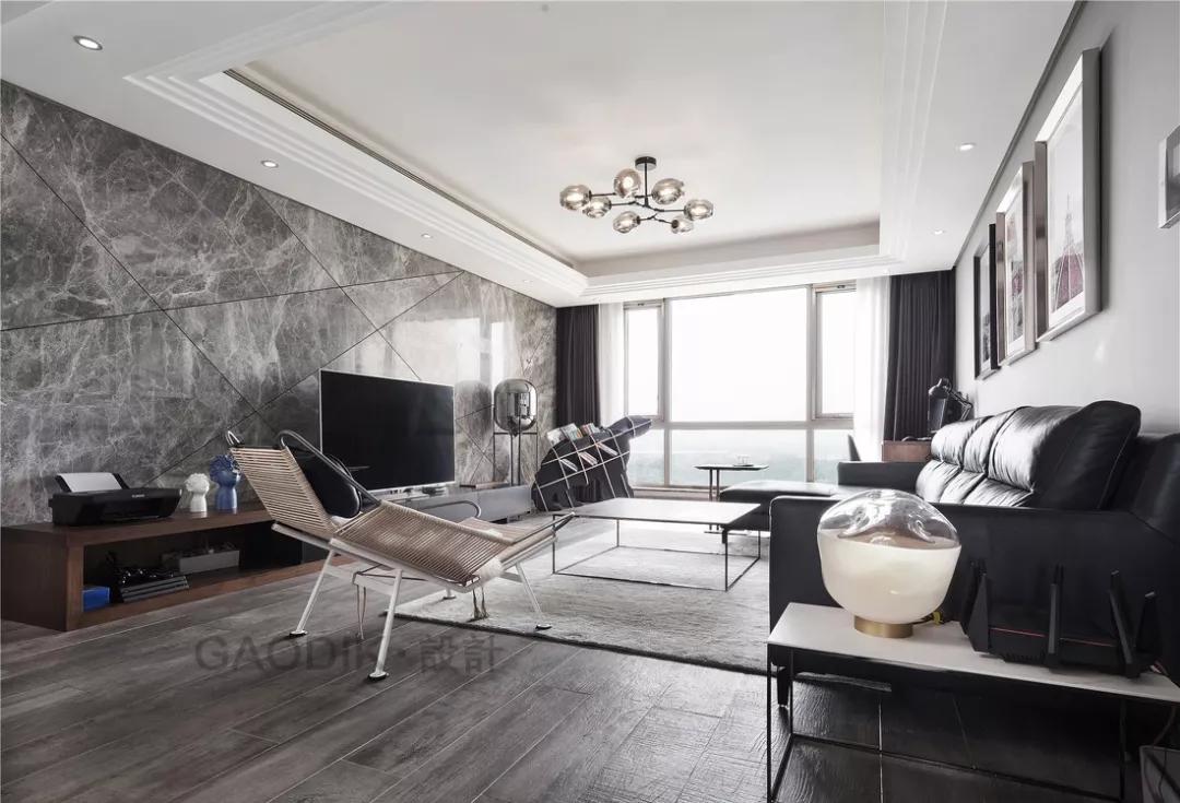 石材電視墻也是比較常用的設計元素。可石材的價格太高,如此一來,瓷磚上墻成了更多人的選擇。瓷磚背景墻的光感效果非常好,屬于相當簡單又不容易搭配出錯的方法了。瓷磚背景墻防火、防潮、防噪音,而且方便清潔。只需要簡單擦拭,客廳瞬間就嶄新了!