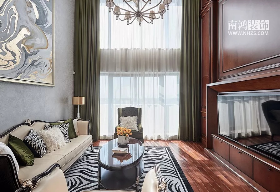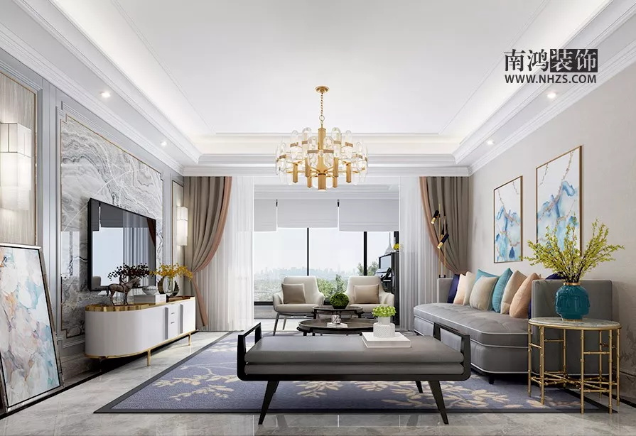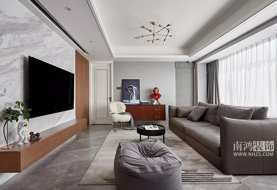 客廳盡量選擇LED射燈,射燈的燈光,不刺眼、分布均勻,且光線都向下投射,完美弱化了天花板的存在。