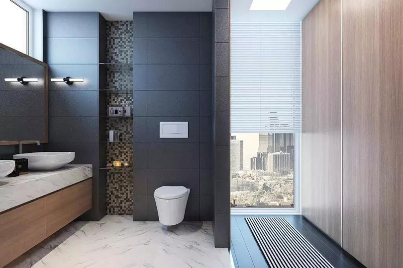 衛(wèi)生間是下水管道多用區(qū),可以利用玻璃、磚砌等材料進(jìn)行設(shè)計(jì)。