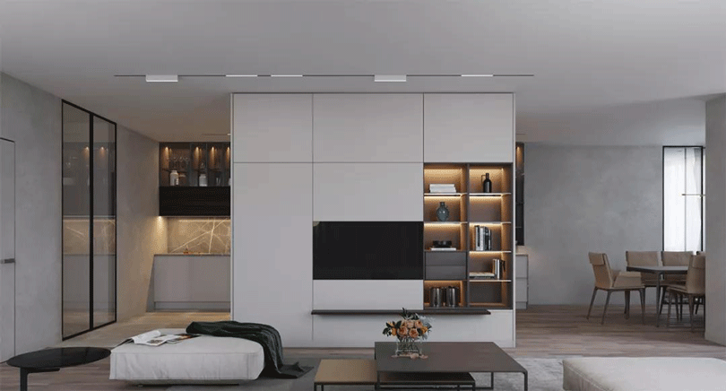 柜體如果全做開放式,會非常考驗主人的搭配功力,搭配不當(dāng)只會增添視覺疲勞感;全做封閉式,可能會略顯單調(diào)。因此“封閉”與“開放”做3:1的比例最好。
