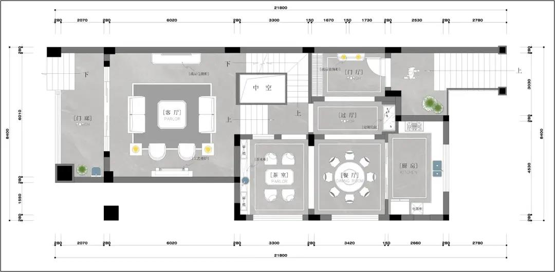 本案為170方現代風格的作品,業主是一對事業有成的夫婦,家里還有一雙兒女和兩個老人,希望設計師能打造出一個簡約低調、大氣美觀的生活空間。