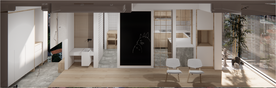 改造思路:①雙玄關(guān)設(shè)計(jì);②環(huán)繞動(dòng)線(打通空間,簡(jiǎn)化交通);③動(dòng)靜分區(qū),優(yōu)化房間朝向;④去客廳化,將客廳打造為注重家人互動(dòng)的多功能區(qū)域。