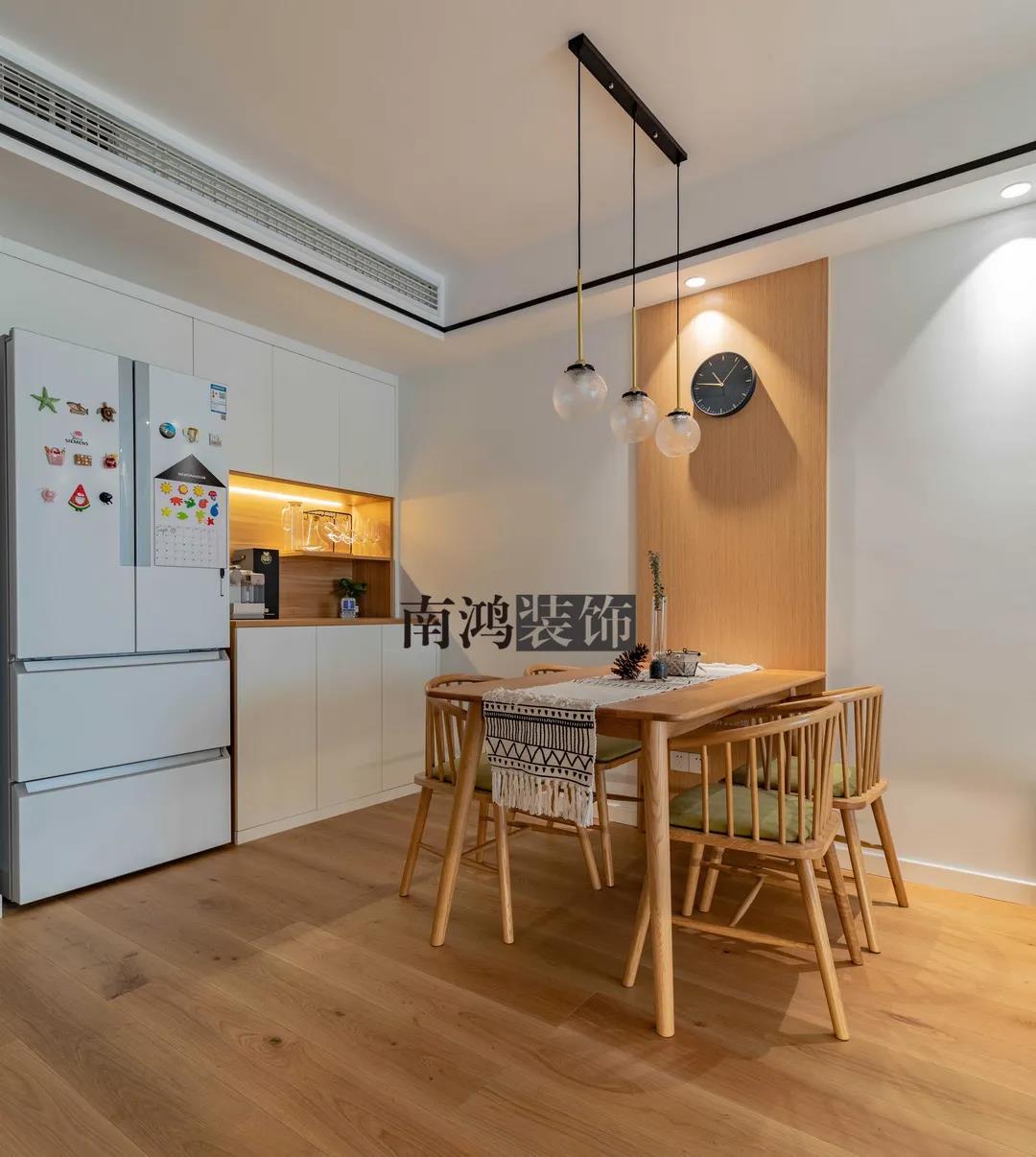 小戶型的餐廳比較適合做嵌入式餐邊柜,利用墻內空間來做收納,能節約不少面積。