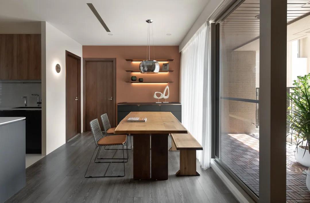 將吧臺與餐桌結合的設計相當美觀,無論是就餐還是品酒,都讓生活充滿了情調,適合單身或是兩個人住的家庭。