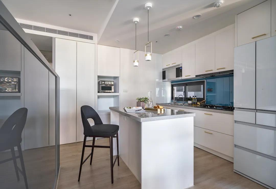 比如,開放式餐廚空間,讓餐廚兩塊區域的動線共享,實現“1+1>2”的效果,小戶型也能擁有一個比較寬松舒適的做飯、就餐空間。